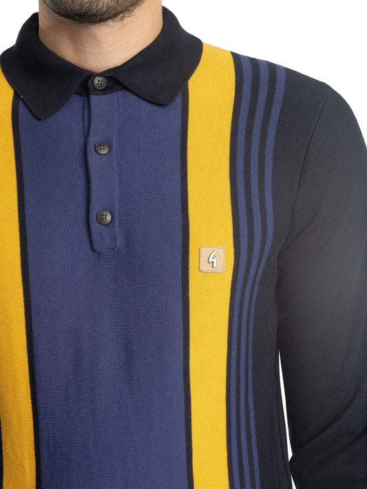 GABICCI Searle Knitted Vintage Polo Shirt | Navy / Yellow Stripes - V53GM00