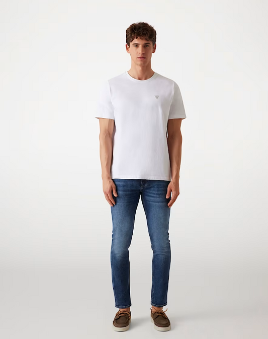 GUESS Front Gold Triangle Embossed Men T-Shirt / White - M5R149K9RM1 - G011