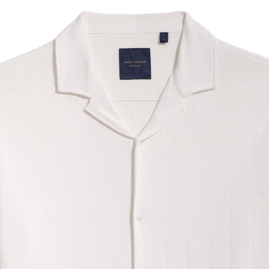 GUIDE London - Short Sleeve Knitted Button Through Revere Collar Jersey Shirt / Ecru - HS2829