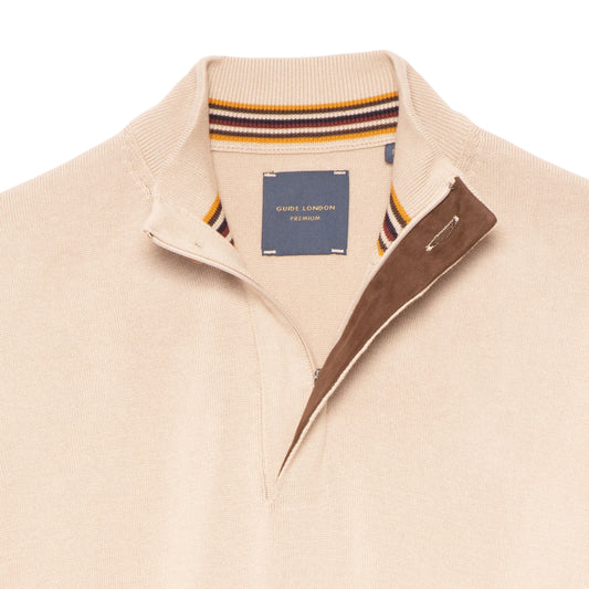 GUIDE London Cotton Knit Zip-Top | Stone - KW2900