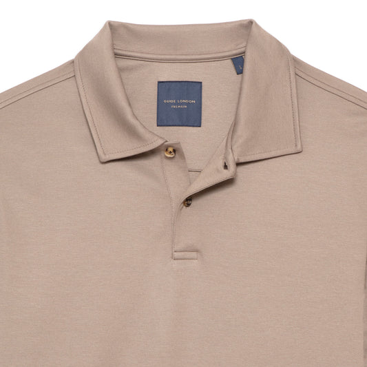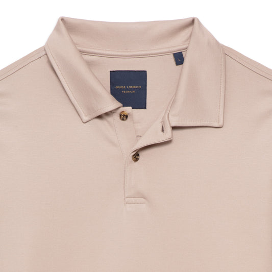 GUIDE London - Heavy Knitted Jersey Short Sleeve Polo | Stone - SJ5791