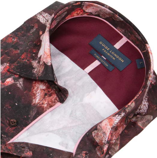GUIDE London Leaf Pattern Long Sleeve Shirt | Black/Red - LS76718 43134
