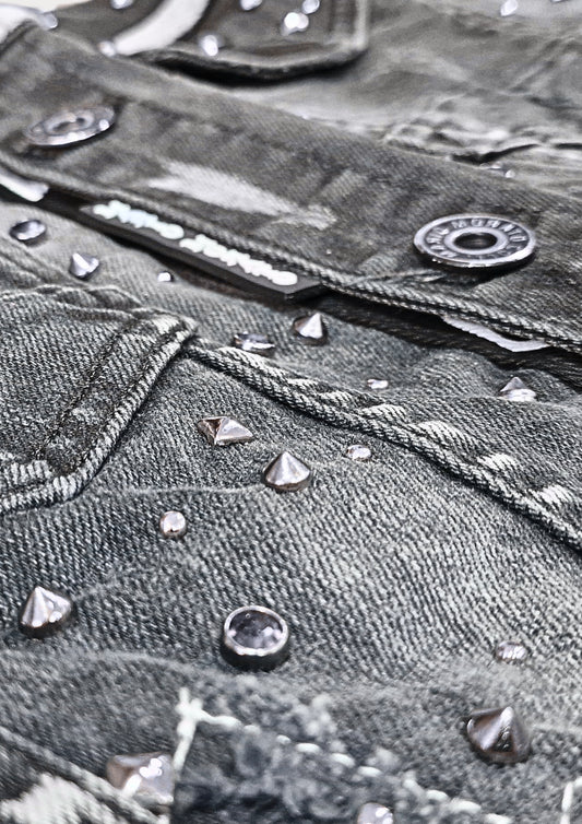MARIO MORATO Denim Jacket - 2629-A - Dark Grey Studded