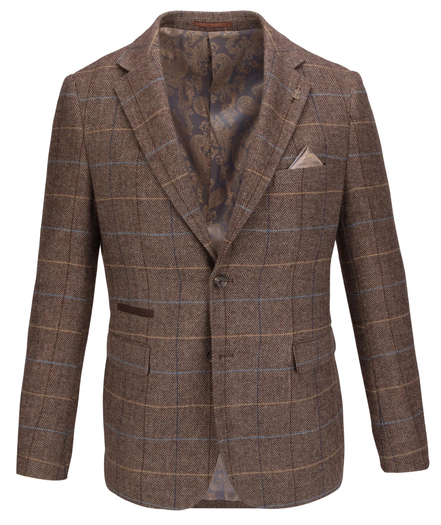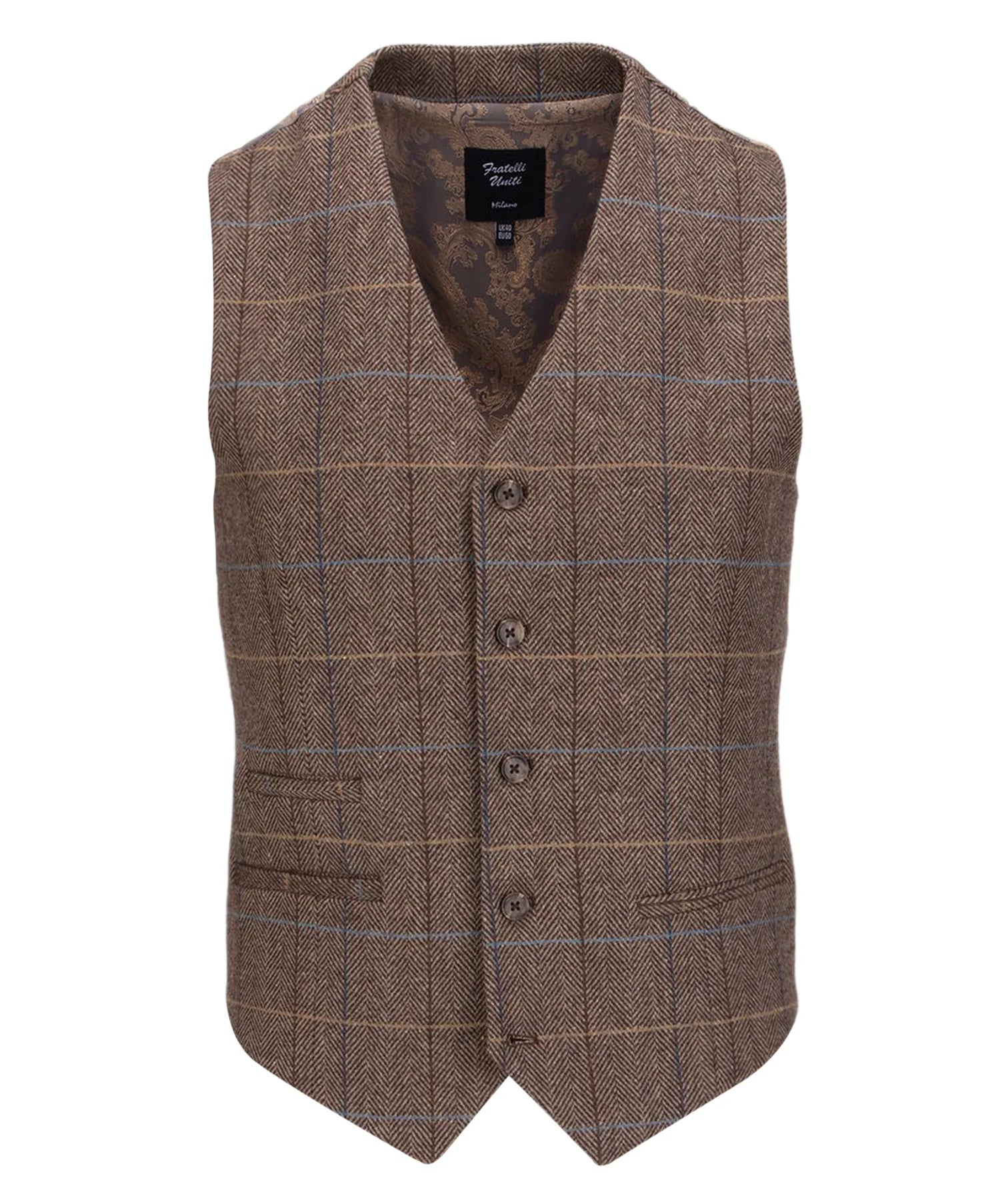 Embrace sophisticated heritage styling with the Fratelli Sergio 3 Pcs Tweed Suit in distinguished Brown (Code: FJK1086). This suit offers a timeless blend of traditional British craftsmanship and modern Italian flair, perfect for making a memorable impression.