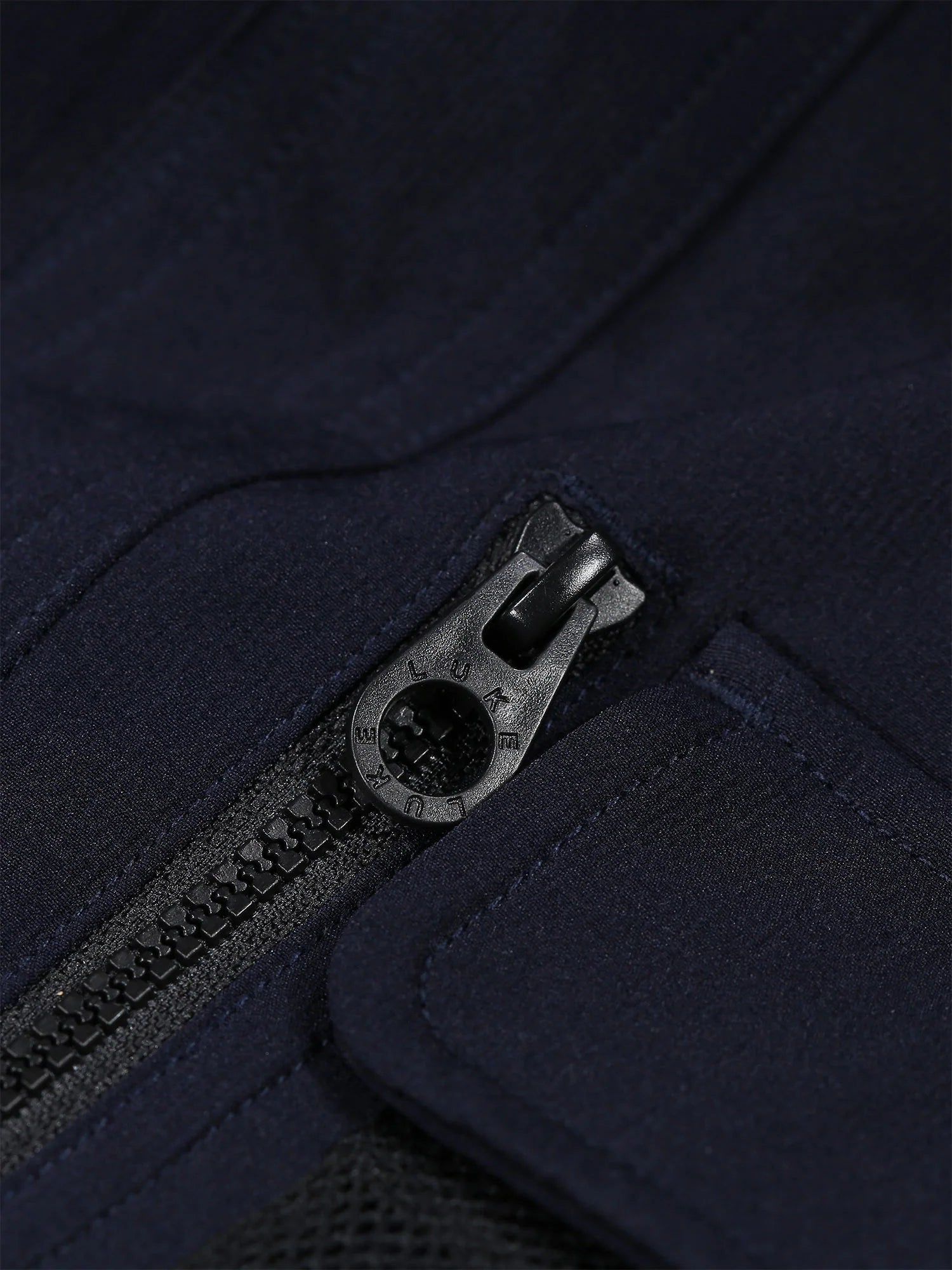 Functionality is further enhanced by thoughtful additions like the chest patch pocket with a secure fastening and a mesh front pocket for quick access. A matte black LUKE zip puller with cord detail and a matte black plastic zip chest pocket offer secure storage solutions. The right sleeve features a unique dual pocket detail with fastening and a matte black D-ring trim detail, adding a final touch of utilitarian flair.