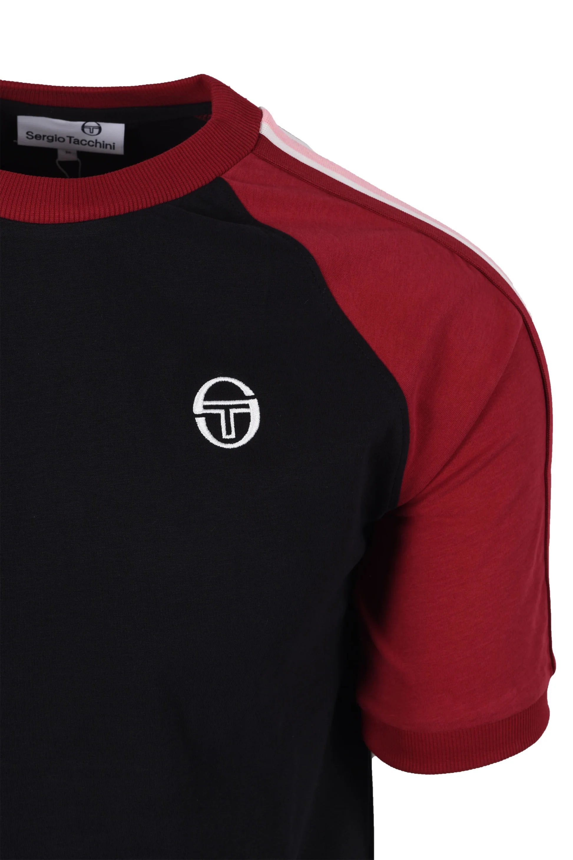 Crafted from 100% soft jersey cotton, this t-shirt offers exceptional comfort and a lightweight feel for all-day wear. It features a classic ringer style with a ribbed neckline and cuffs in a contrasting Gardenia shade, along with signature contrast tape details on the sleeves. The look is completed with an intricately embroidered Sergio Tacchini logo on the chest, a subtle nod to its iconic legacy.